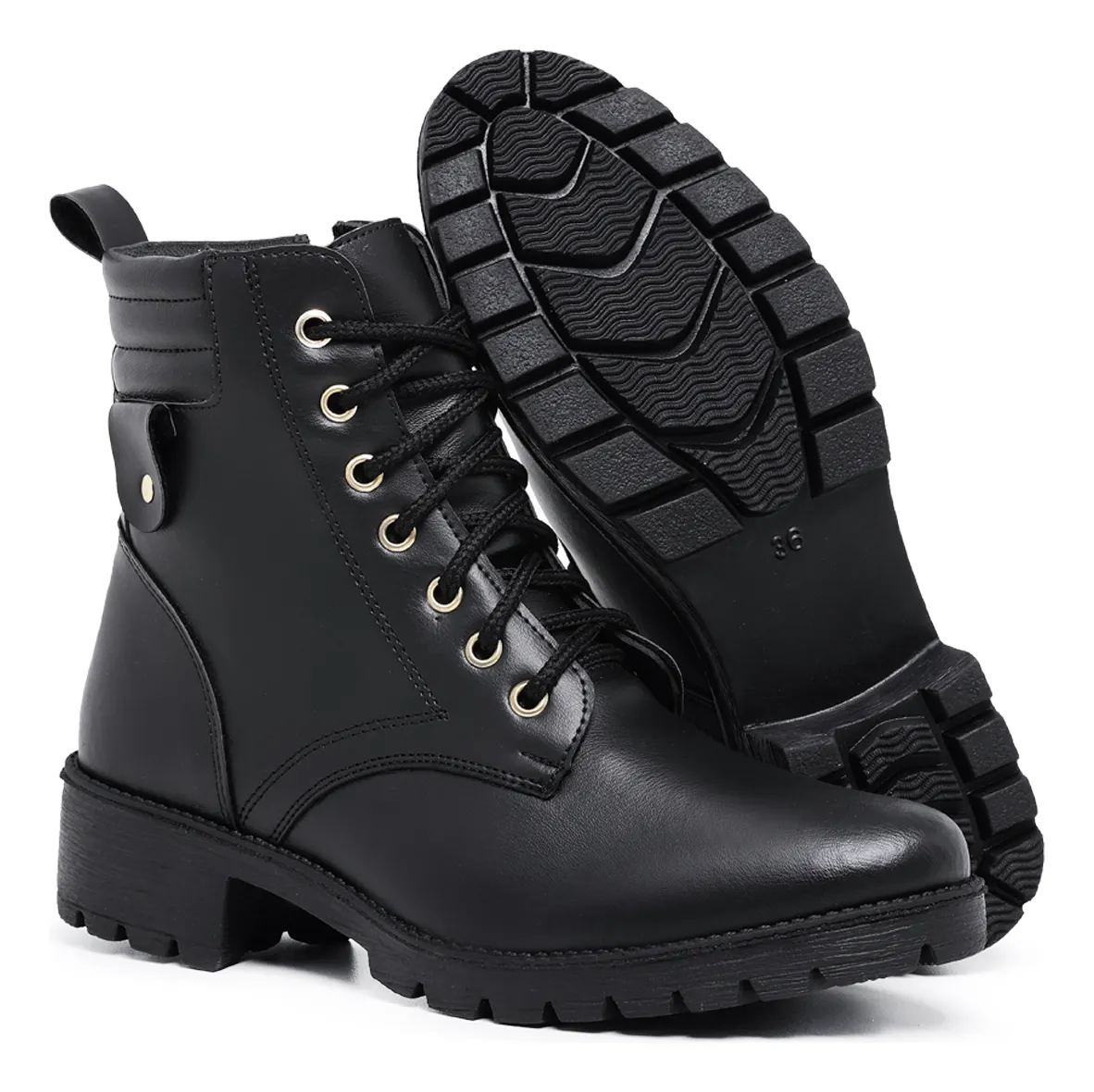 Coturno Feminino Casual Bota Cano Curto Zíper Confortável Estilosa